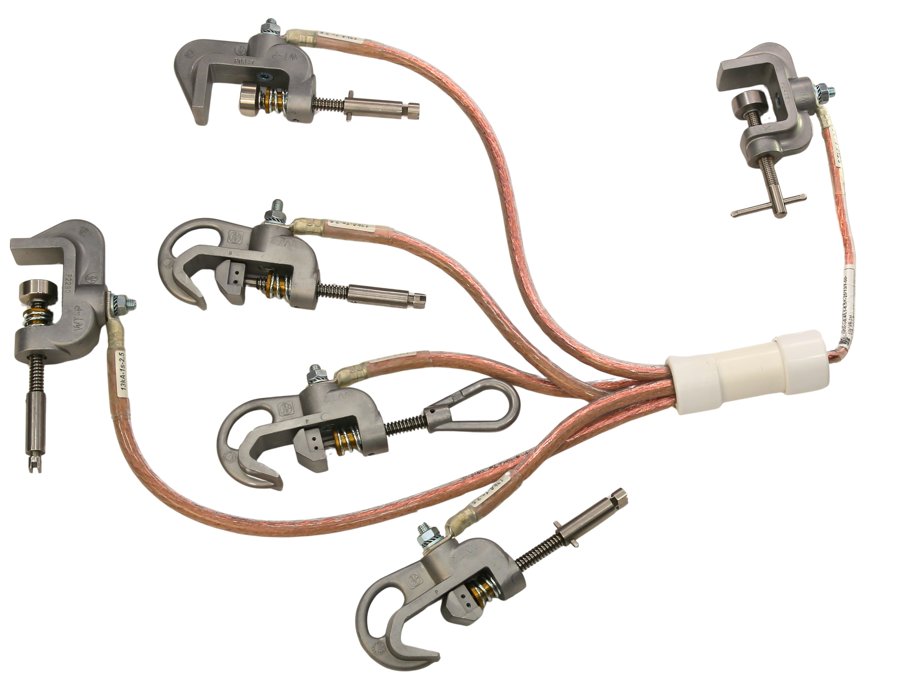 – zaciski fazowe WT-Z2 wyposażony w docisk sprężynowy zaciskający się na przewodzie trakcyjnym, który może być montowany na przewodzie trakcyjnym lub na wysięgniku słupa trakcyjnego,