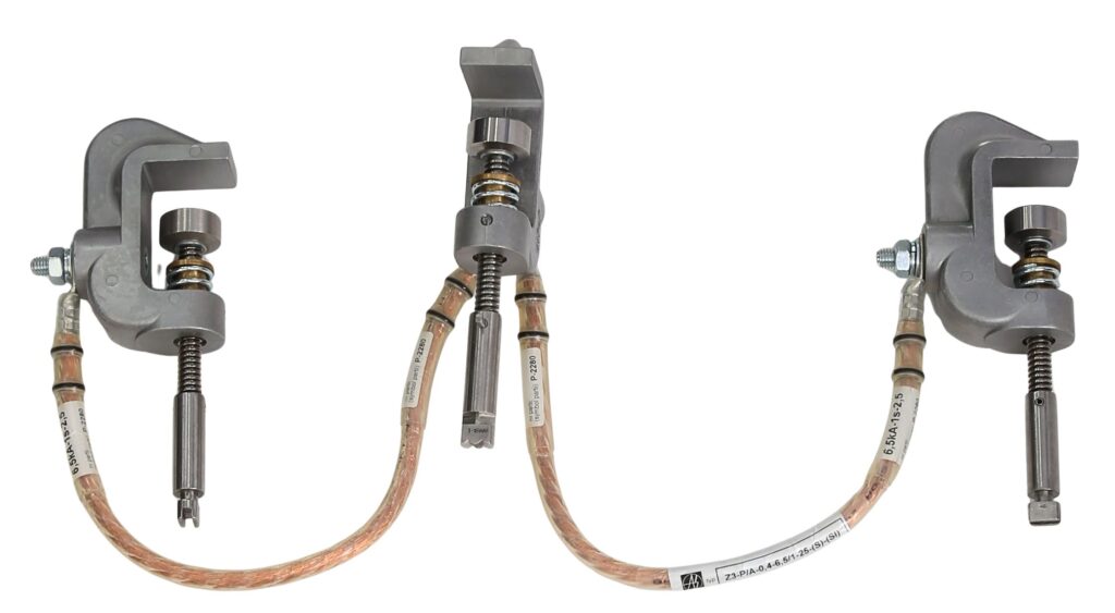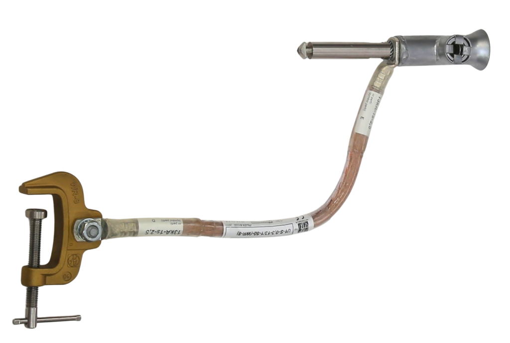 Uziemiacz przenośny do przyłącza typu ,,sworzeń” U-S służy do zabezpieczenia miejsca pracy przy liniach i urządzeniach elektroenergetycznych wyposażonych w przyłącze typu „sworzeń” /np. do szaf RSK-6/.